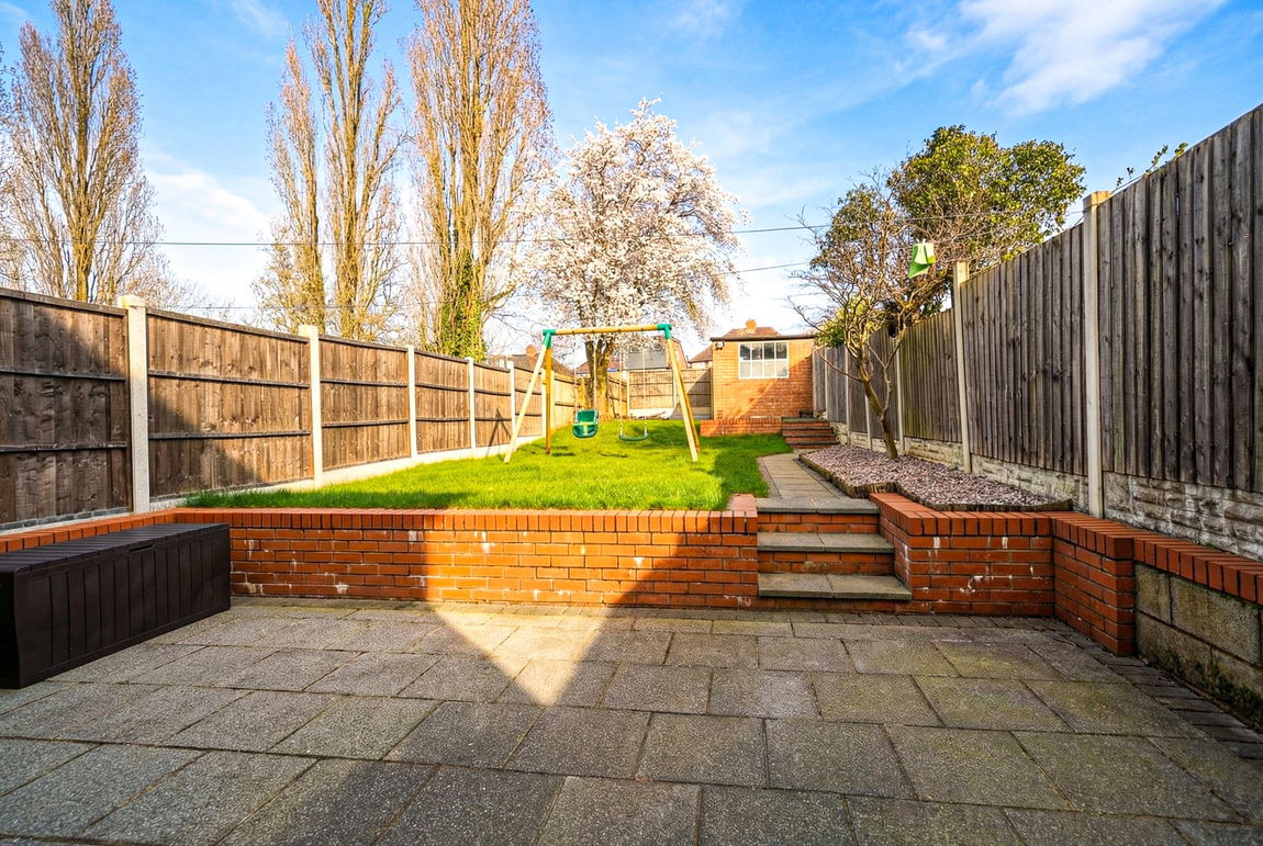 Being mainly laid to lawn with paved patio area, fencing to boundaries and access to rear garage/storage via a shared rear service road
