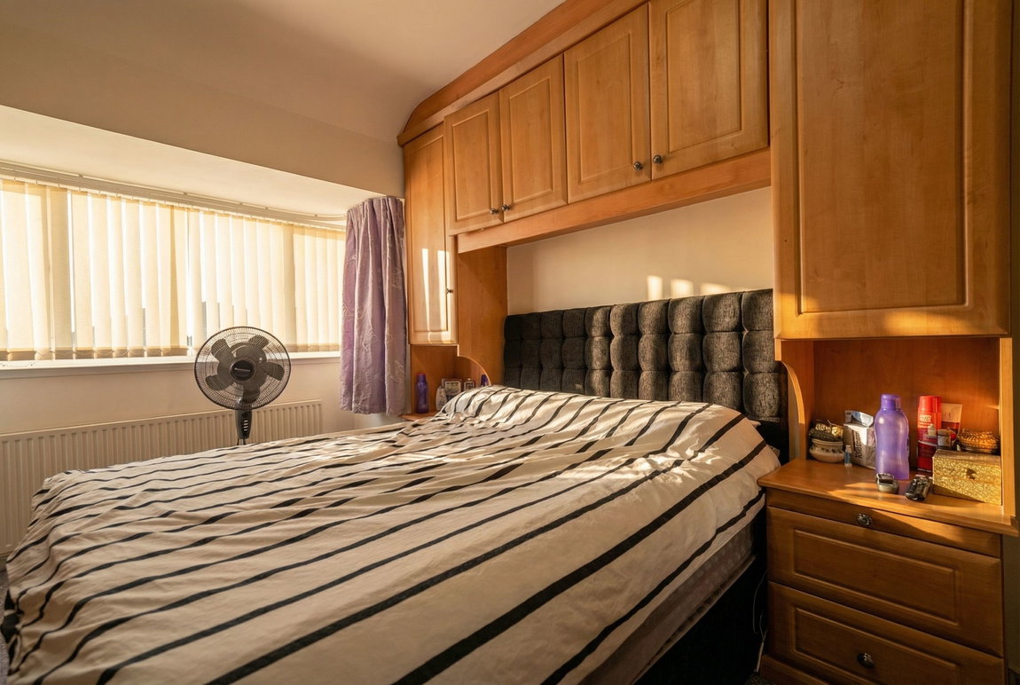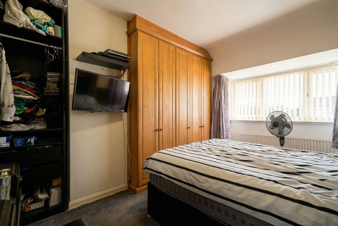 With double glazed bay window to front elevation, fitted wardrobes and over bed storage, radiator and ceiling light point