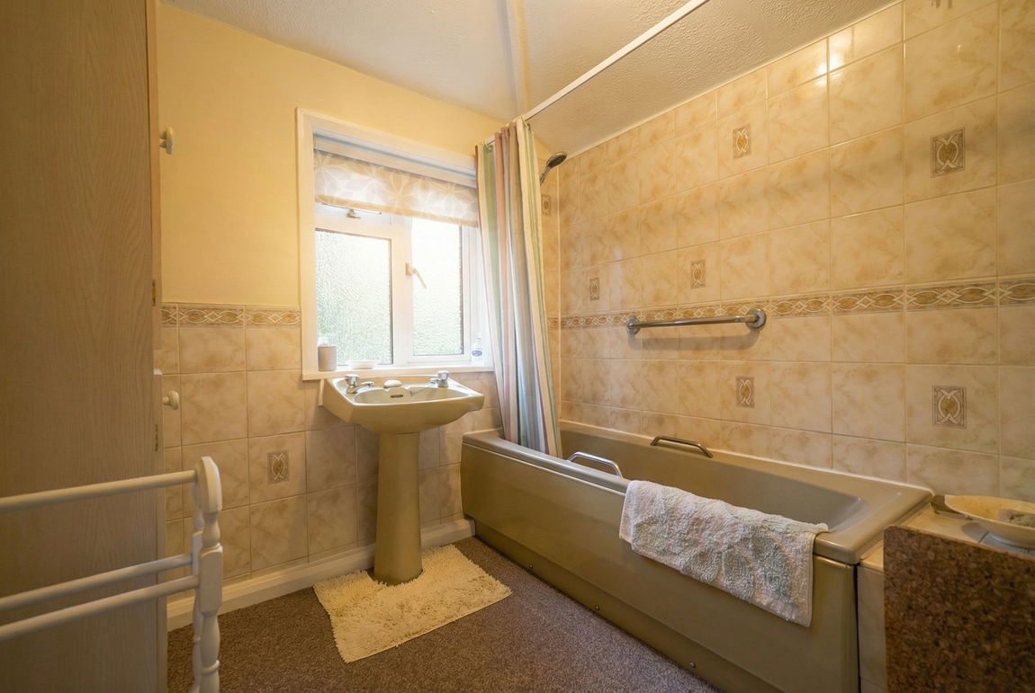 Being fitted with a two piece suite comprising a panelled bath with shower over and a pedestal wash hand basin. Tiling to water prone areas, airing cupboard, obscure double glazed window to rear, radiator and ceiling light point