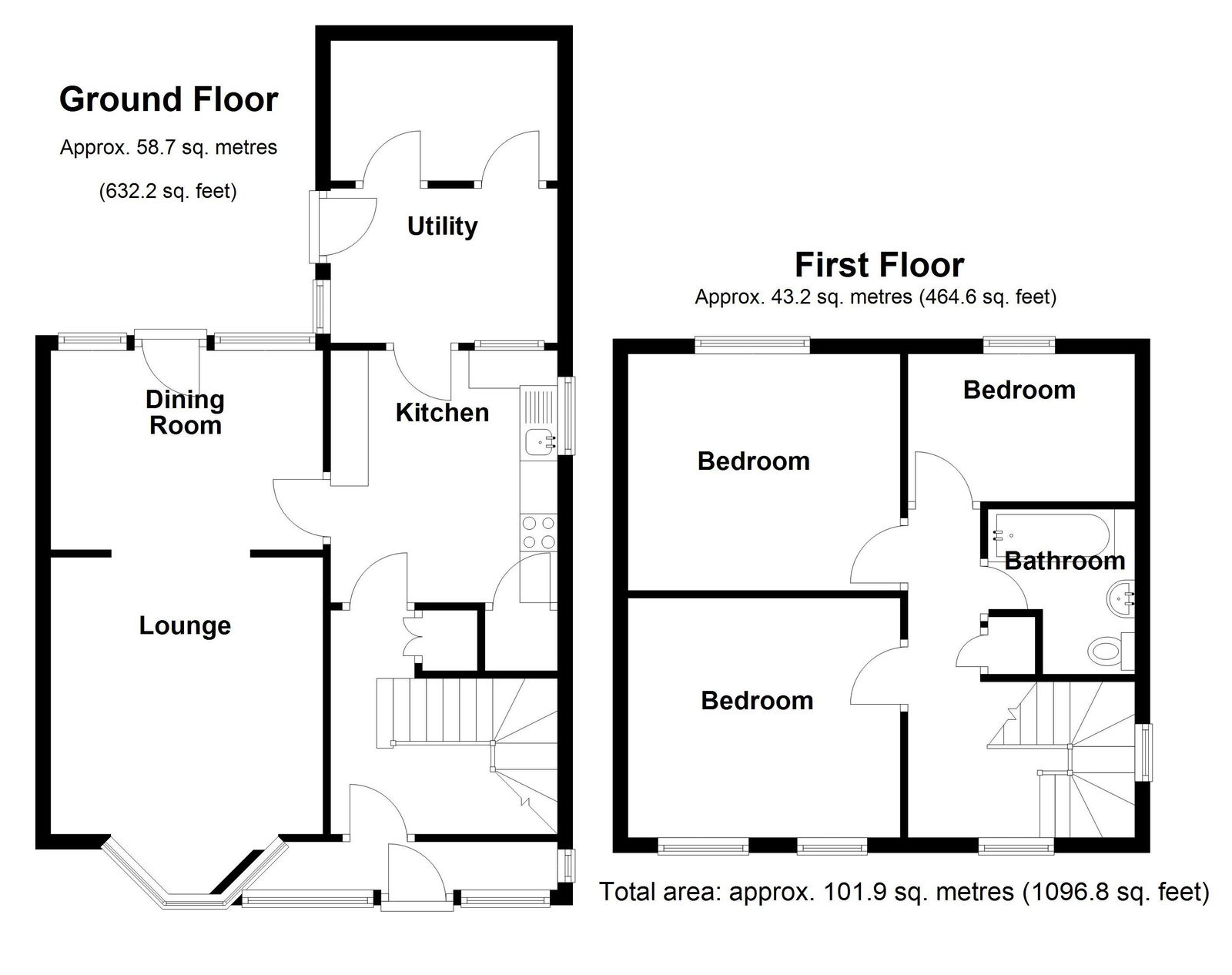 Bedroom One to Front - 3.4m x 2.9m (11'1" x 9'6")