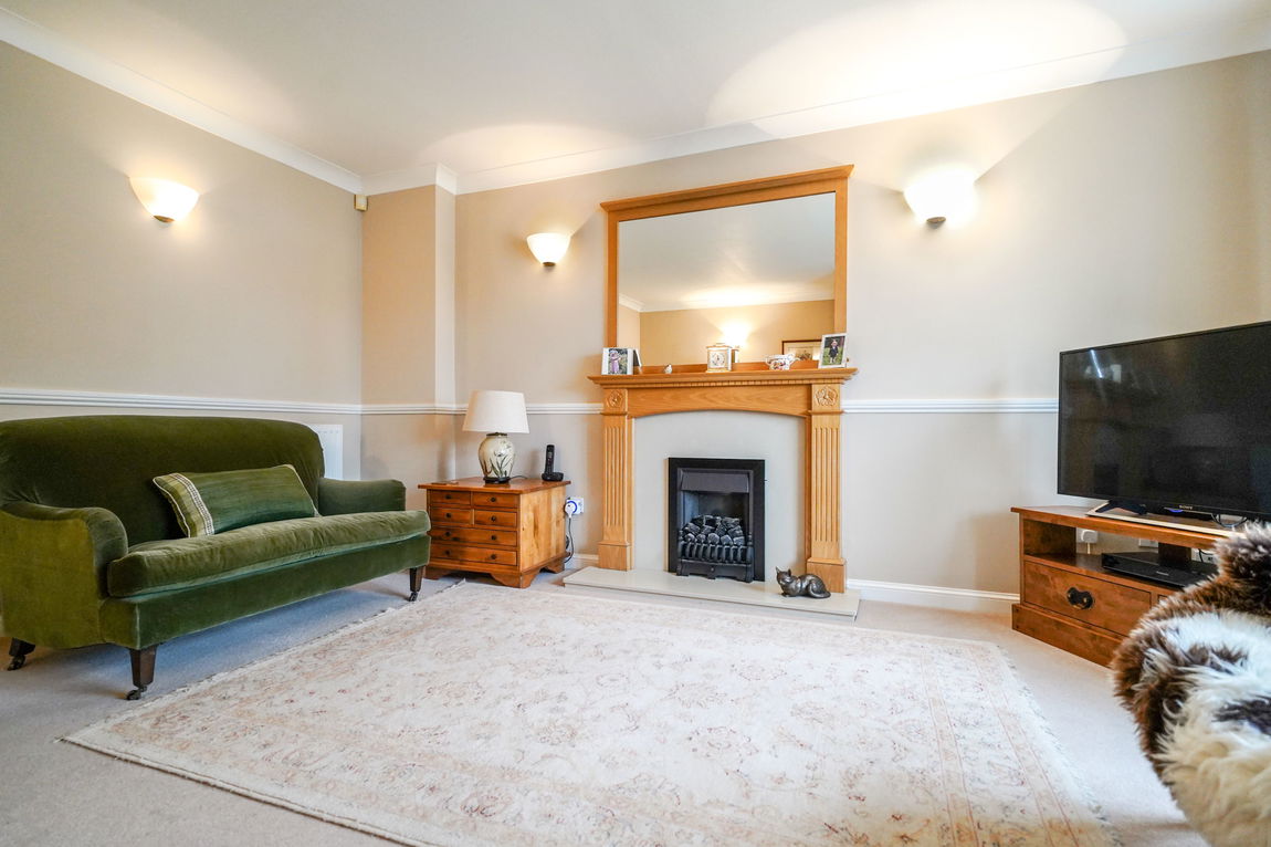 With double glazed bay window to front elevation, radiator, wall lighting, electric fireplace with marble hearth and wooden surround and door to