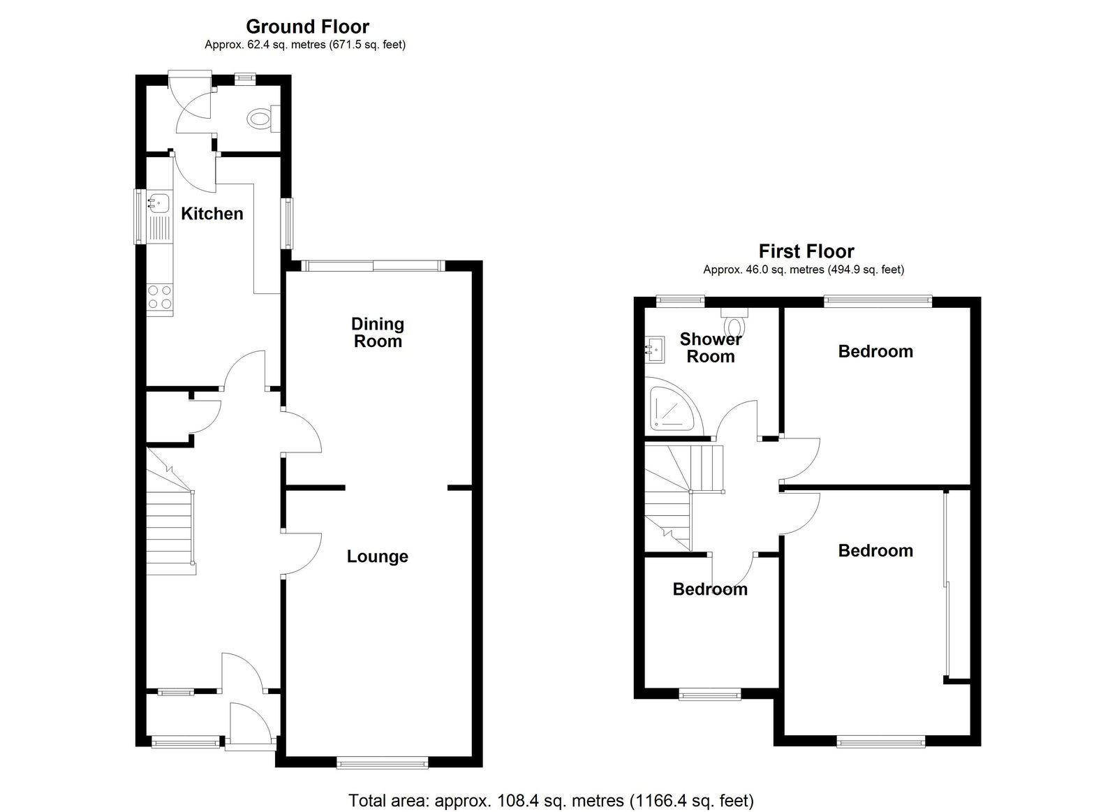 With low flush W.C, tiled splashback, double glazed window to rear, radiator and light point