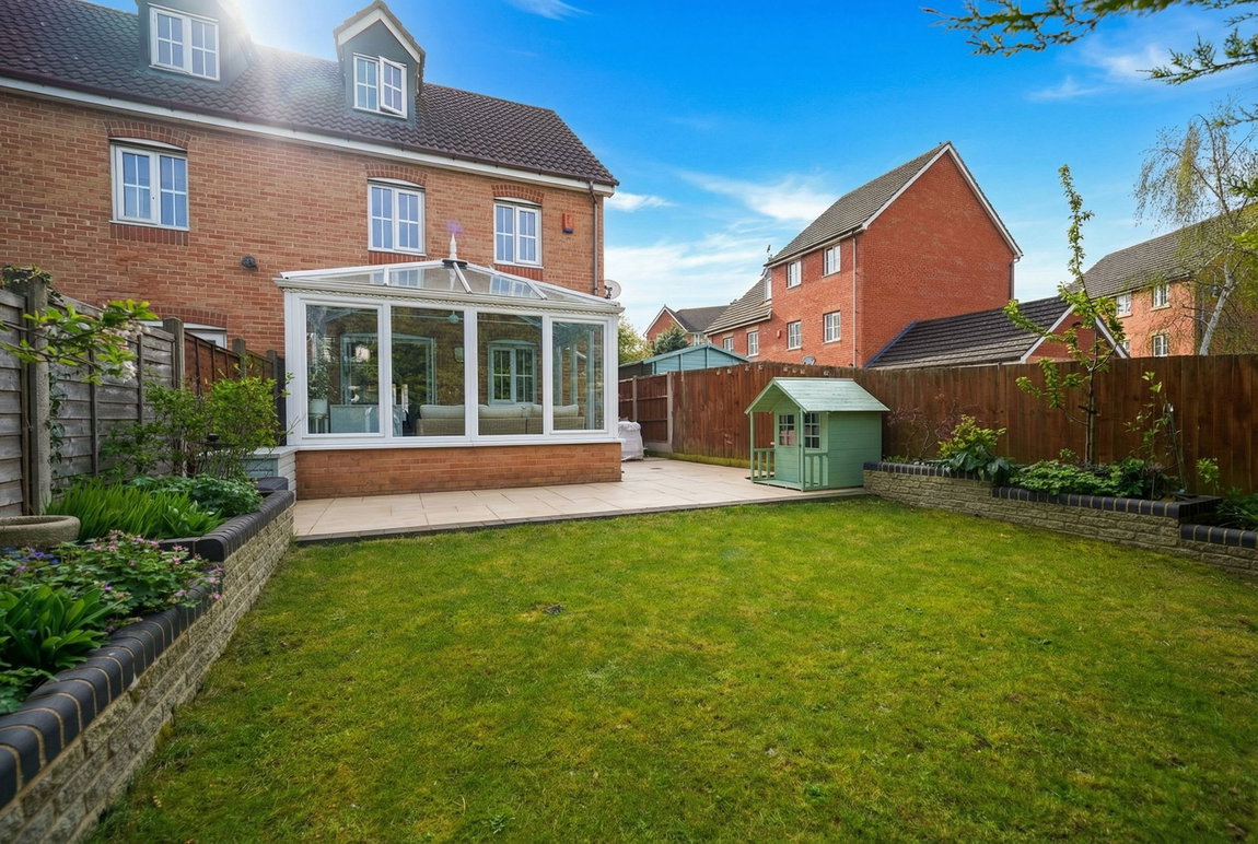 An extremely well presented and modern four bedroom semi detached property briefly affording lounge, conservatory, breakfast kitchen, guest WC, three first floor bedrooms and family bathroom, master bedroom with en-suite to second floor, landscaped rear garden, garage and allocated parking space