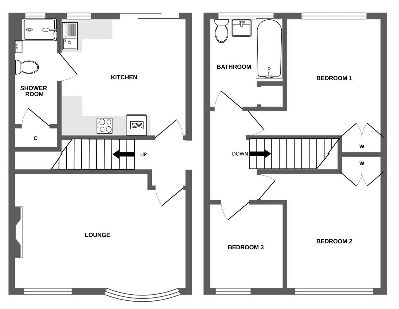 Being fitted with a white suite comprising of a shower enclosure with overhead monsoon soaker, vanity wash hand basin and a low flush W.C. Obscure triple glazed window to rear, under stairs storage cupboard, heated towel rail, metro tiling to splash prone areas, wood effect flooring, ceiling spot lights and space and plumbing for washing machine with work surface over