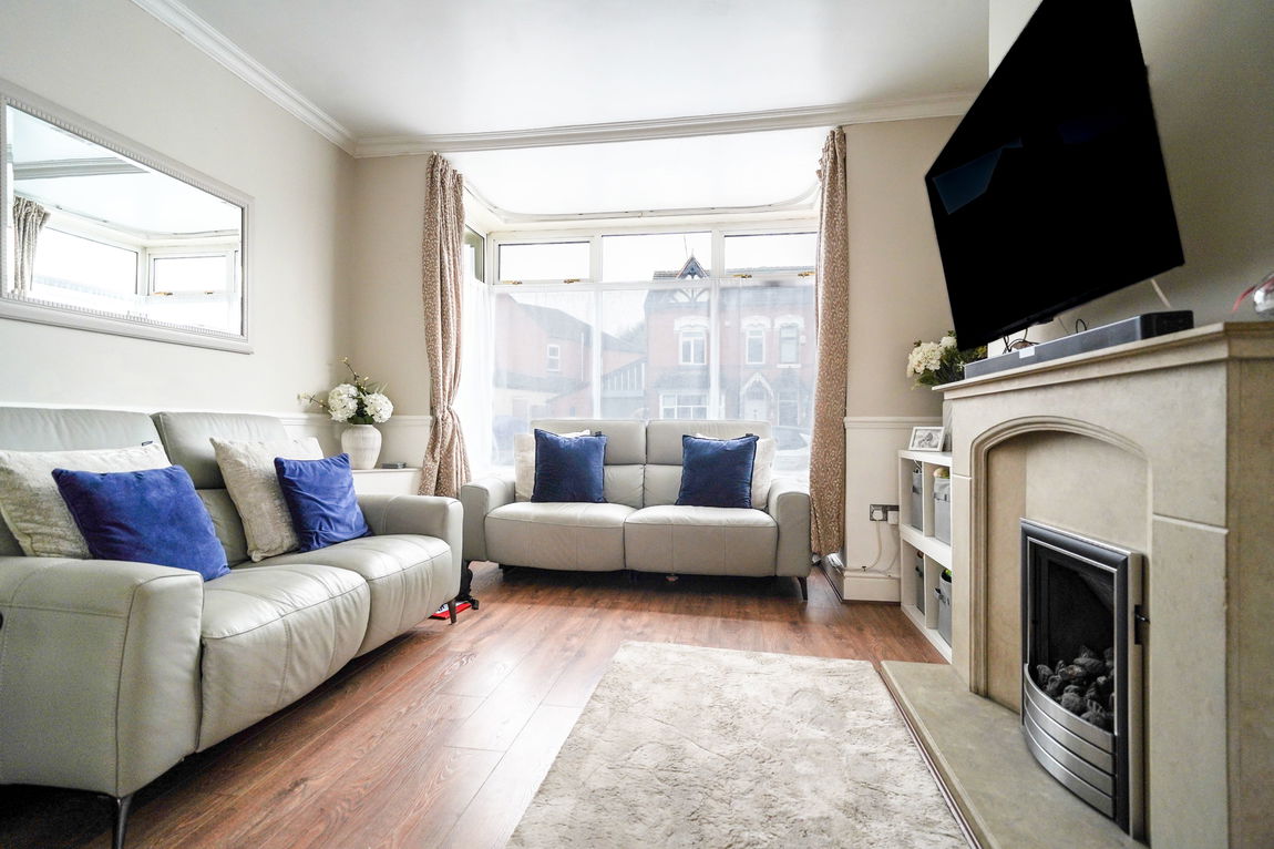 With double glazed bay window to front elevation, two radiators, ceiling light point, gas fireplace with feature stone surround and double doors into