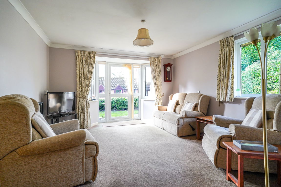 Having a UPVC double glazed window to the side elevation, UPVC double glazed patio door leading out to the communal gardens with matching windows to either side, wall mounted electric heater, ceiling light point, corniced coving, emergency pull cord and door leading through to: