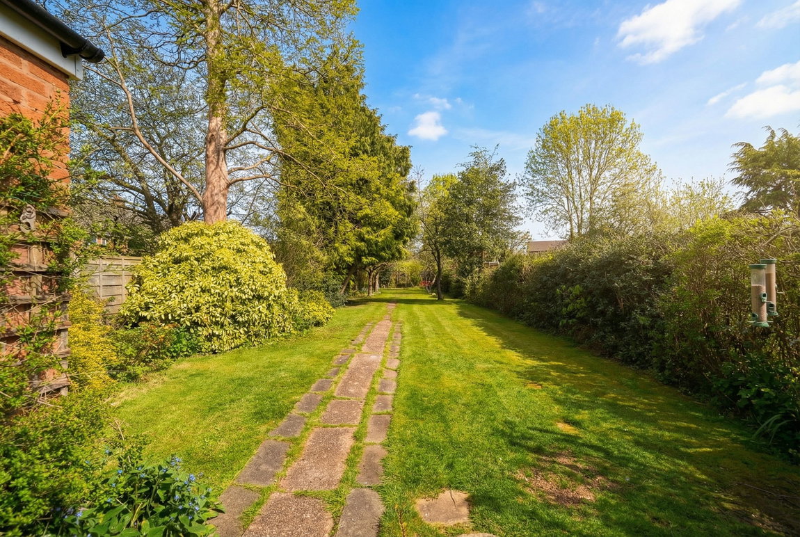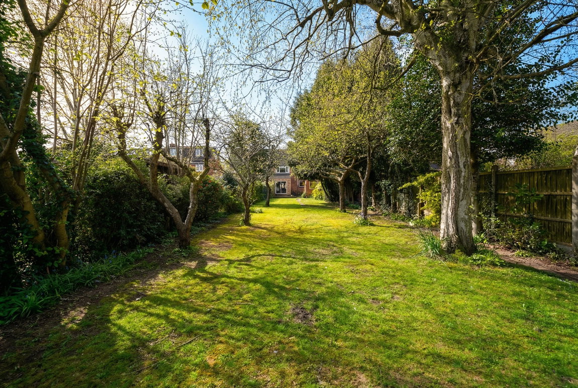 An exceptionally large rear garden being mainly laid to lawn with fencing to boundaries, timber framed shed, summerhouse and a variety of mature trees, shrubs and bushes