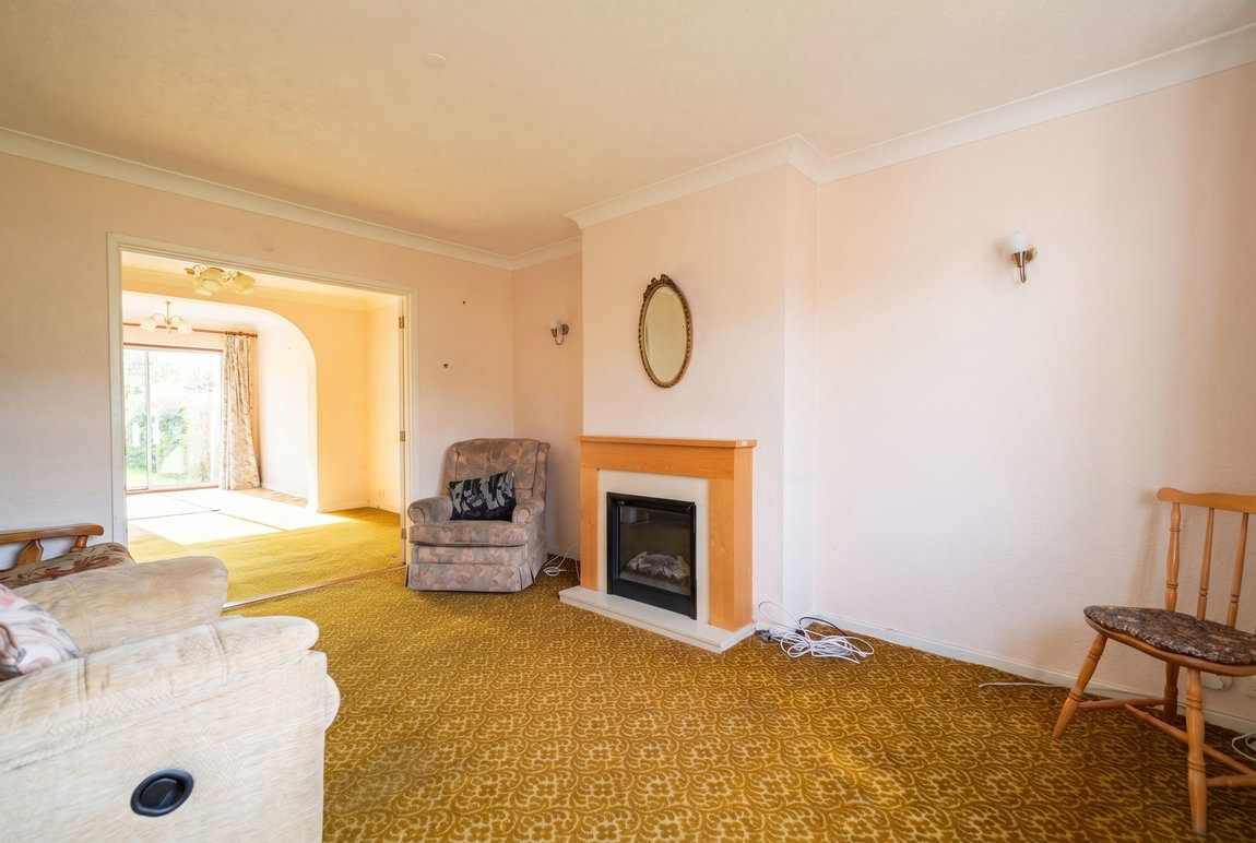 Having double glazed sliding patio doors to the rear garden, UPVC double glazed window to the side elevation, two ceiling light points, two central heating radiator and door opening into: