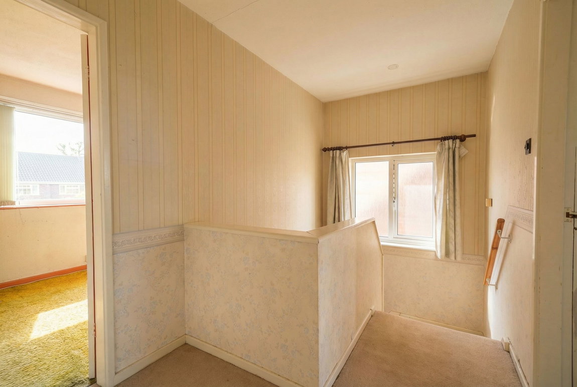 Having an obscure UPVC double glazed window to the side elevation, ceiling light point, loft hatch access and doors leading off to:
