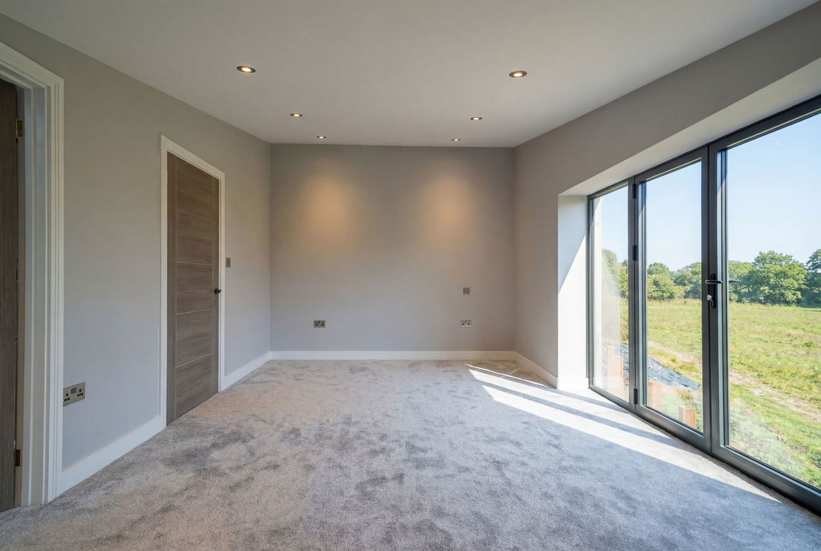 This beautiful, generously sized carpeted room features charming sloped ceilings and large windows that flood the space with natural light. A Juliet balcony further enhances the bright and airy feel, while enjoying lovely views over the surrounding landscape to the rear of the property. The room also benefits from a modern ensuite, TV point, ample sockets, and sleek ceiling spotlights throughout.
