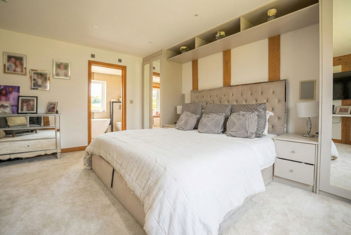 An impressive six double bedroom detached property situated on a generous plot in a delightful semi-rural location. Briefly affording accommodation comprising spacious entrance hallway, three large reception rooms, spacious breakfast kitchen, guest WC, utility, three en-suites, large easterly facing rear garden and off-road parking for multiple vehicles