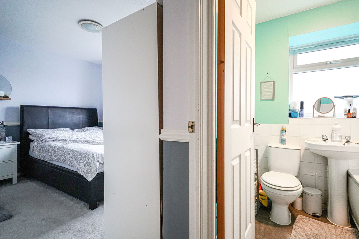 With ceiling light point, access to boarded loft space, fitted storage unit with sliding doors and doors leading off to