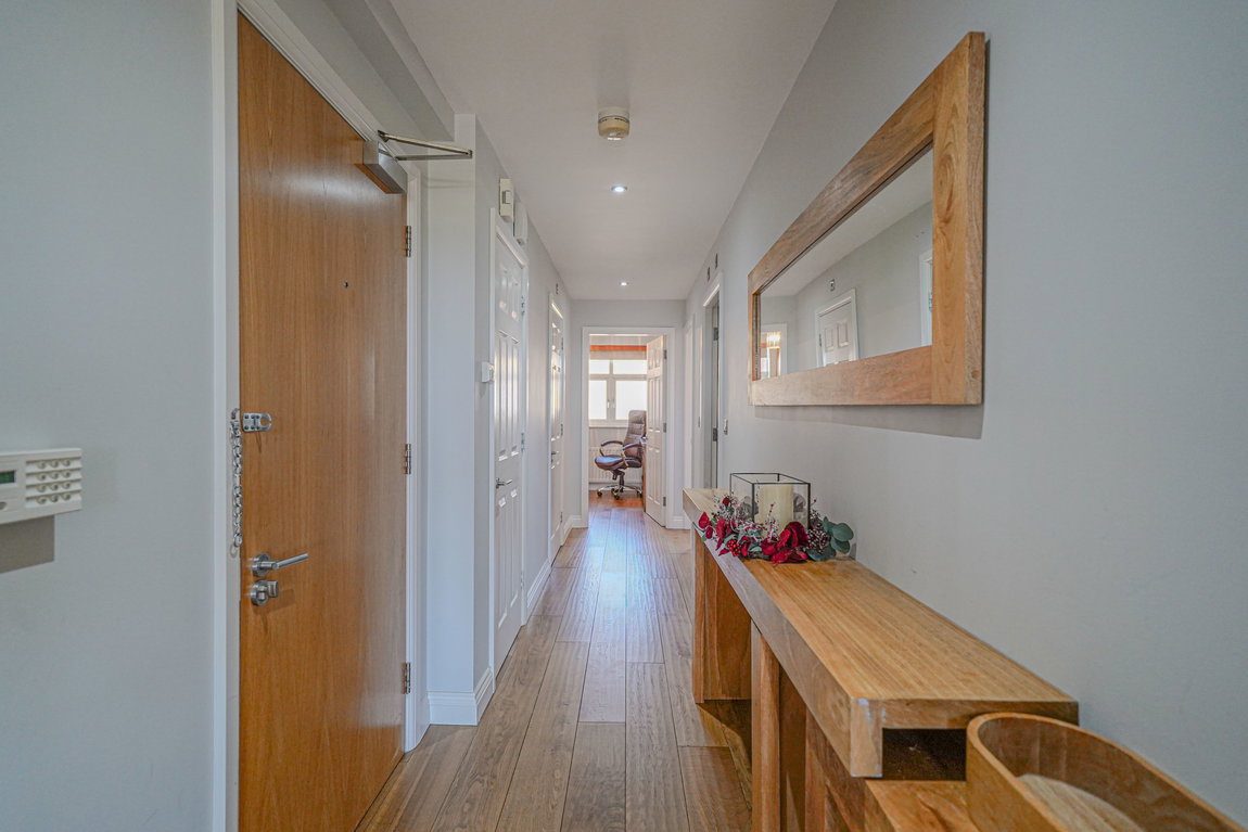 Reception Hallway Having recessed ceilings spotlights, central heating radiator, airing cupboard and doors opening to the lounge, two bedrooms, family bathroom and