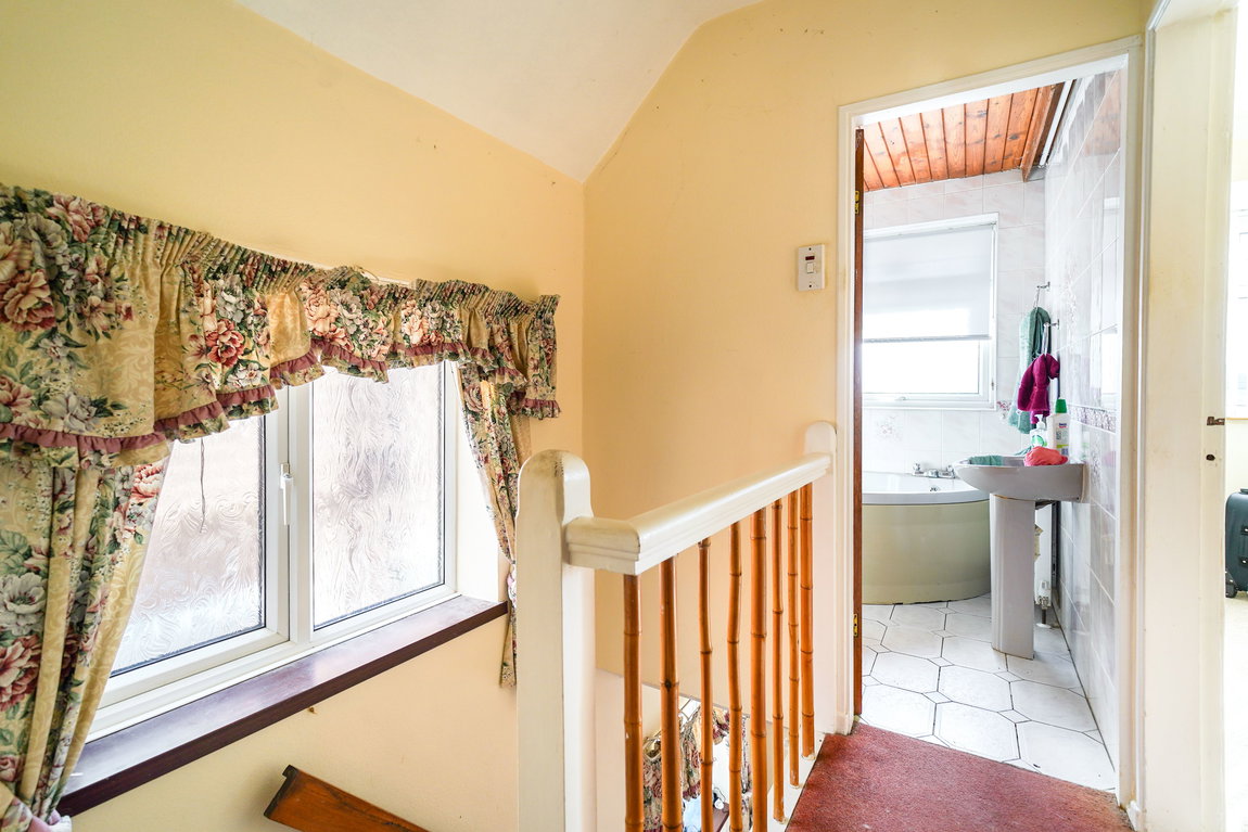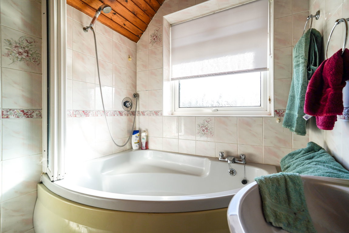 Being fitted with a three piece suite comprising a corner panelled bath with shower attachment, pedestal wash hand basin and a low flush W.C. Tiling to water prone areas, obscure double glazed window to front, radiator and lighting