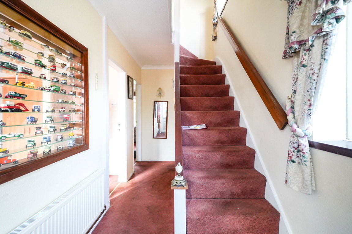 With UPVC double glazed window to side, ceiling light point, radiator, stairs leading to the first floor accommodation and doors leading off to